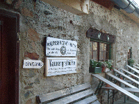 die persoenliche Bank fuer die Wirtsleute, der Schlitz im Stein ist für die Speisekarte