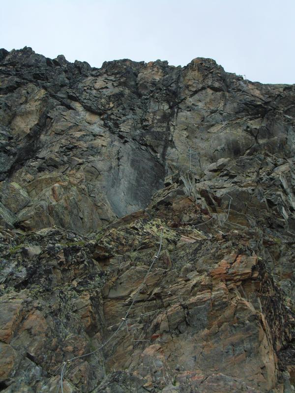Auf der Webseite der Hütte ist angegeben: klettersteigähnlich und sollte nur mit Helm und Klettersteigausrüstung begangen werden. Ich hatte alles dabei und benutzte es auch, aber ich glaube daß das nur die wenigsten tun, vor allem weil nichts wissen von dieser Empfehlung, wenn sie den Übergang benutzten.