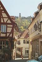 | vom Schloßtor zum Marktplatz, im linken Bild hinten die Wachenburg |